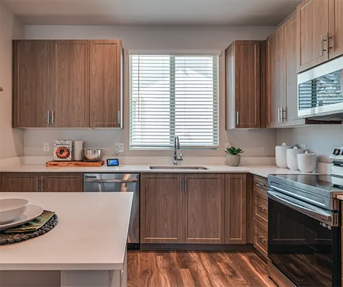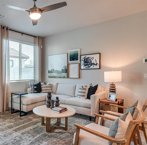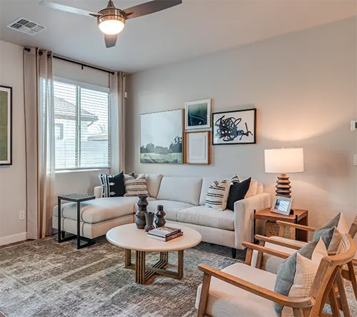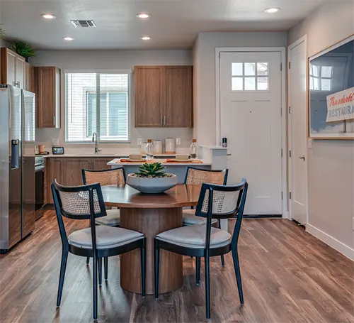 Our single and two-story homes are thoughtfully designed with spacious 1, 2, and 3-bedroom layouts to suit your lifestyle. Enjoy smart home technology, fully equipped kitchens, and the convenience of full-size washer/dryers. Each home features a private backyard, perfect for outdoor relaxation or entertaining, creating the ideal space to balance comfort and functionality.
