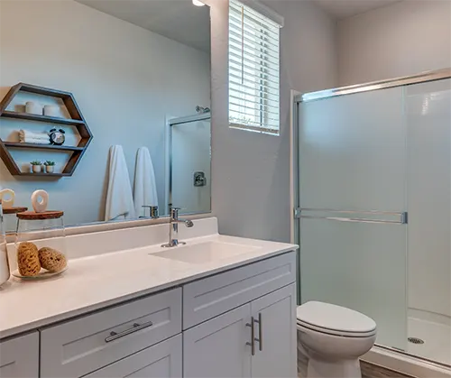 Unwind in sleek bathrooms featuring tub/shower combinations, ample storage, and polished finishes. These thoughtfully designed spaces offer both functionality and a relaxing retreat after a long day.